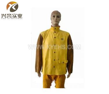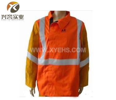 AP2730 橙色防火布配金黃皮袖焊服-帶反光條