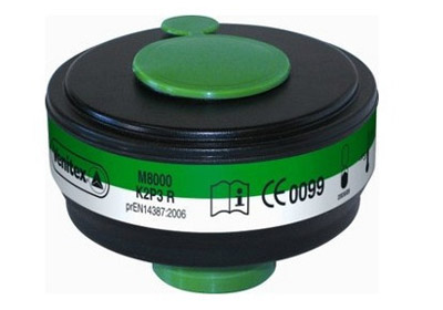 單一型濾罐,配合M8000/M9000系列全面罩使用。A2R:防氨氣、某些胺的衍生物,P3等級防塵。