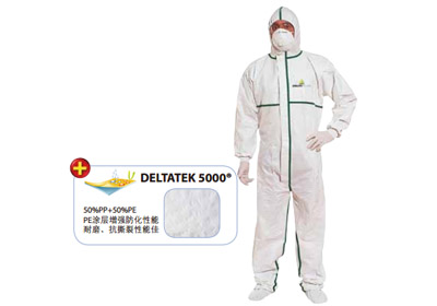 限次性無(wú)紡布連體服(膠條型),無(wú)硅樹(shù)脂材料彈性兜帽、袖口、腳踝口,不干膠粘合門襟,膠條防水密封縫線,防粉塵微粒,