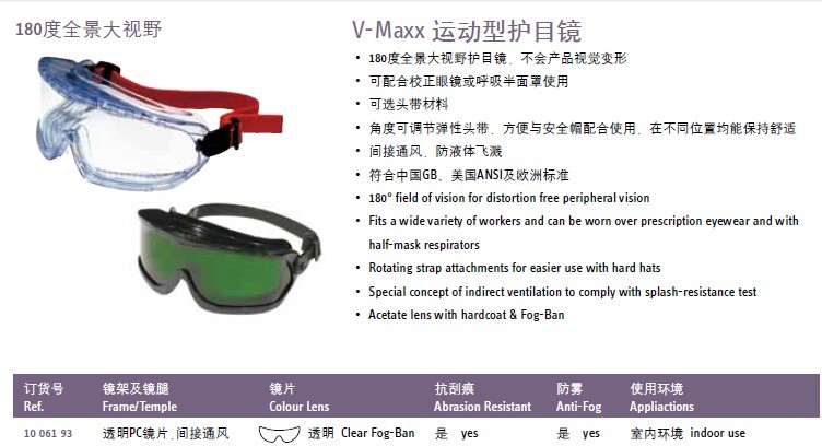 產(chǎn)品名稱:霍尼韋爾1006193 V-MAXX聚碳酸酯防霧護目鏡