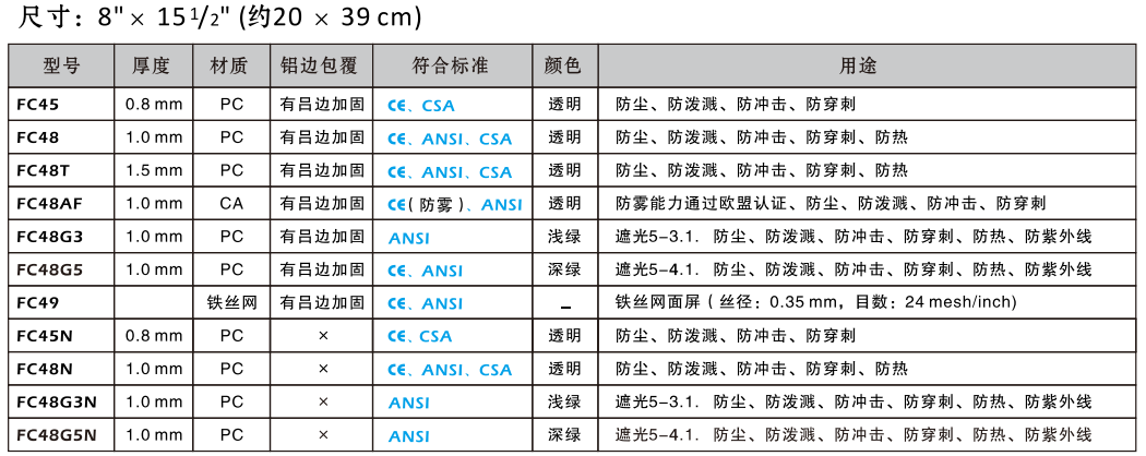 產(chǎn)品名稱:藍(lán)鷹B1系列標(biāo)準(zhǔn)型安全面屏