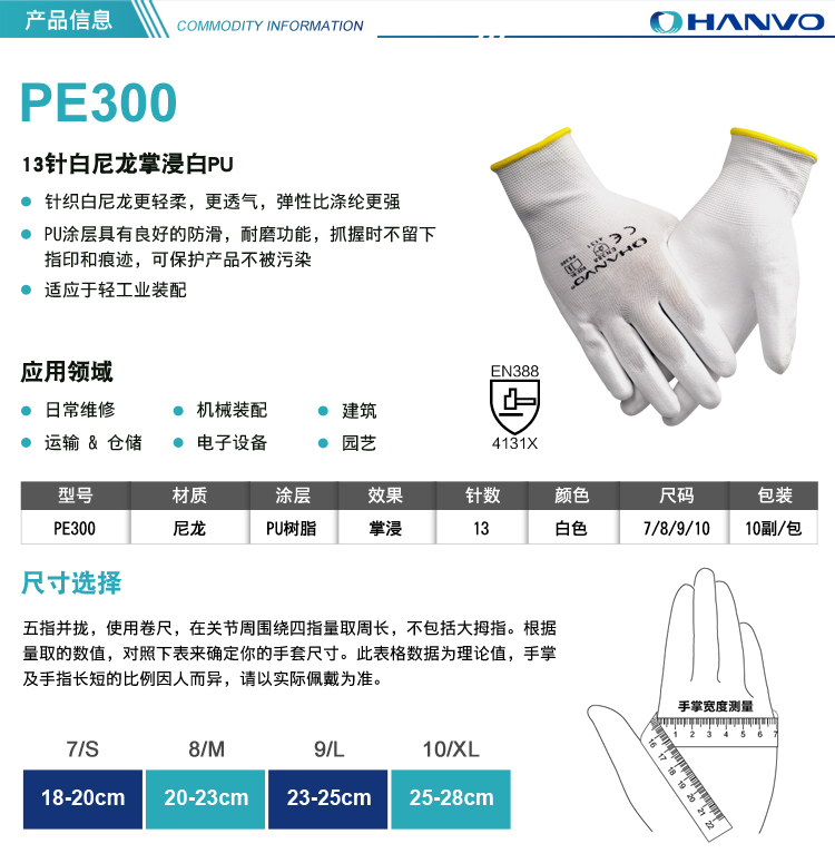 產(chǎn)品名稱:恒輝 PE300 PU涂層手套涂指涂掌