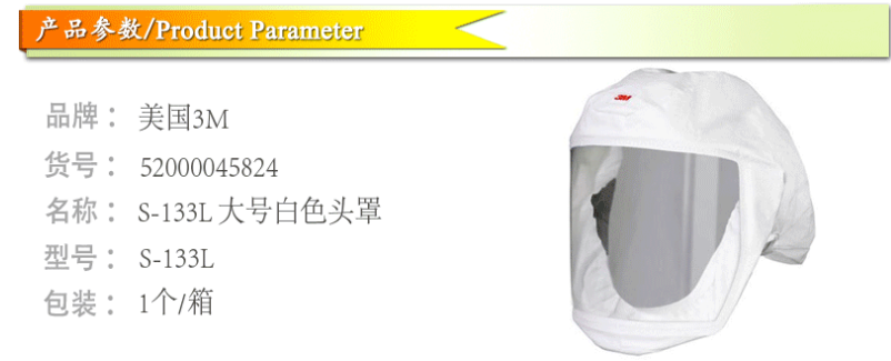 產(chǎn)品名稱:3M S-133L 中/大號白色頭罩(頭圍 54-64厘米)