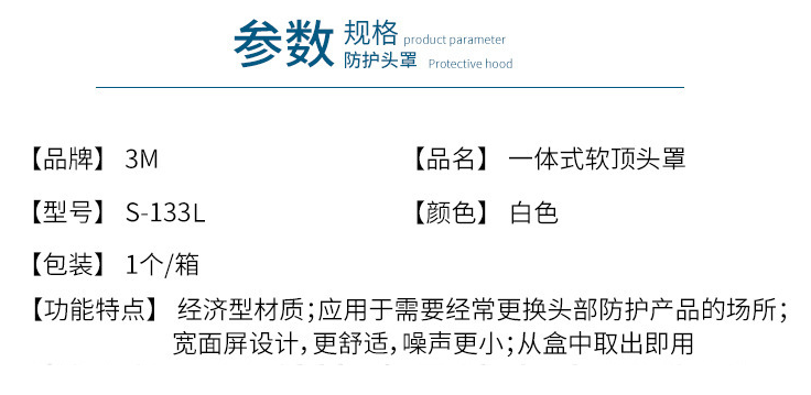 產(chǎn)品名稱:3M S-133S 小/中號(hào)白色頭罩(頭圍 50-58厘米)