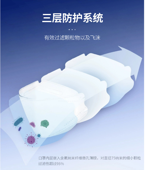 三層防護(hù),有效過(guò)濾顆粒物以及飛沫;