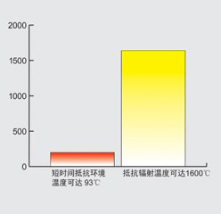 以上圖示為Lakeland工業(yè)隔熱服針對(duì)輻射熱和環(huán)境熱防護(hù)性能的相對(duì)比較。所顯示溫度值為試驗(yàn)室數(shù)據(jù)的推測數(shù)值,并不能用于代表此防護(hù)服裝實(shí)際使用于這些溫度環(huán)境中。使用者的具體身體狀況,工作環(huán)境,以及實(shí)際工作性質(zhì)都會(huì)對(duì)防護(hù)溫度及暴露時(shí)間產(chǎn)生不確定性。